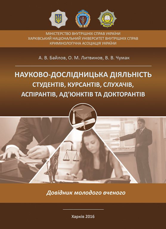 Згідно з рішенням Номінаційного комітету конкурсу імені Святого Володимира за краще науково-правниче видання в Україні у 2016 році довідник молодого вченого «Науково-дослідницька діяльність студентів, курсантів, слухачів, аспірантів, ад’юнктів та докторантів», підготовлений завідувачем кафедри кримінального права і кримінології факультету № 1 Олексієм Литвиновим, професором кафедри кримінального права і кримінології факультету № 1 Антоном Байловим, провідним науковим співробітником відділу організації наукової роботи Володимиром Чумаком, здобув перемогу в номінації «Правнича освіта і наука», а його автори нагороджені Дипломом за ІІ місце в конкурсі імені Святого Володимира за краще науково-правниче видання в Україні.