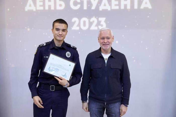 Ігор Терехов привітав молодь Харкова з Днем студента. Серед кращих здобувачів освіти Харківського національного університету внутрішніх справ Подяки міського голови отримали курсант факультету № 2 капрал поліції Сергій Бойко та курсантка факультету № 1 рядова поліції Кристина Коваль.