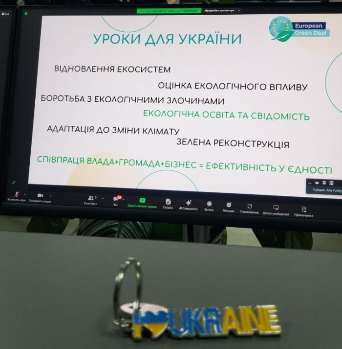 Курсантська і студентська молодь, завдяки продемонстрованим матеріалам презентацій та виступам спікерів, ознайомилася з актуальною узагальненою інформацією, яка сьогодні стосується кожного жителя планети, дізналися озвучені пункти Зеленого курсу запровадженого у країнах-членах ЄС, заради досягнення до 2050 року кліматично-нейтрального стану.