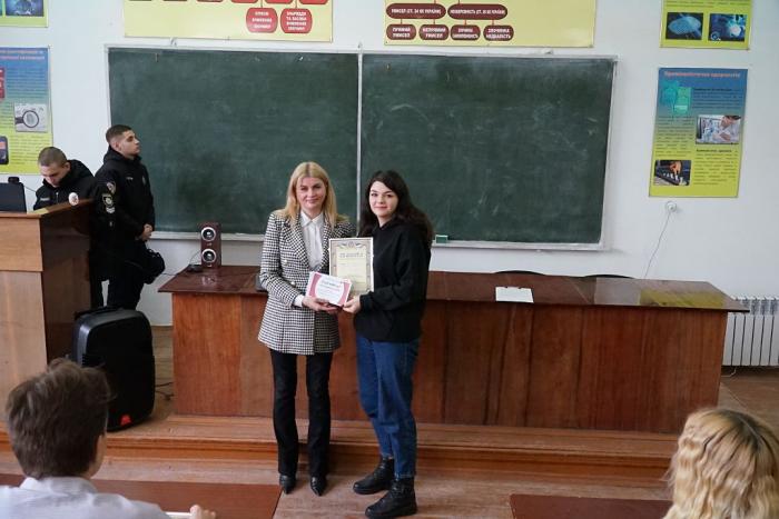 Декан факультету також вручила нагороди учасникам та переможцям квесту з практичного відпрацювання навичок першої домедичної допомоги, грамоту та сертифікат для участі у курсі «Основи підтримки життя» від Кам’янець-Подільського осередку мальтійської служби допомоги.