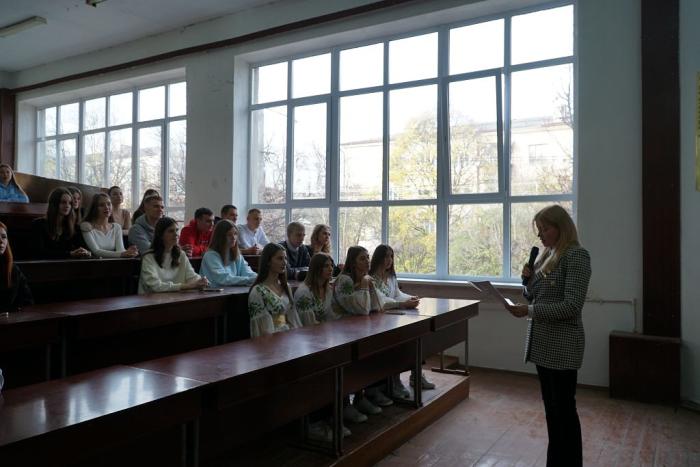 Від імені студентів-першокурсників слова посвяти виголосила голова Кам’янець-Подільського осередку студентської ради факультету № 6 Анастасія Гончарук.