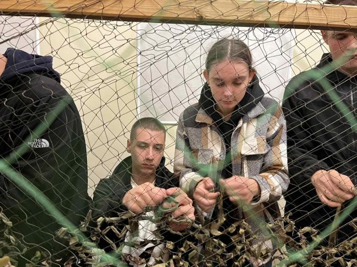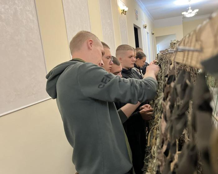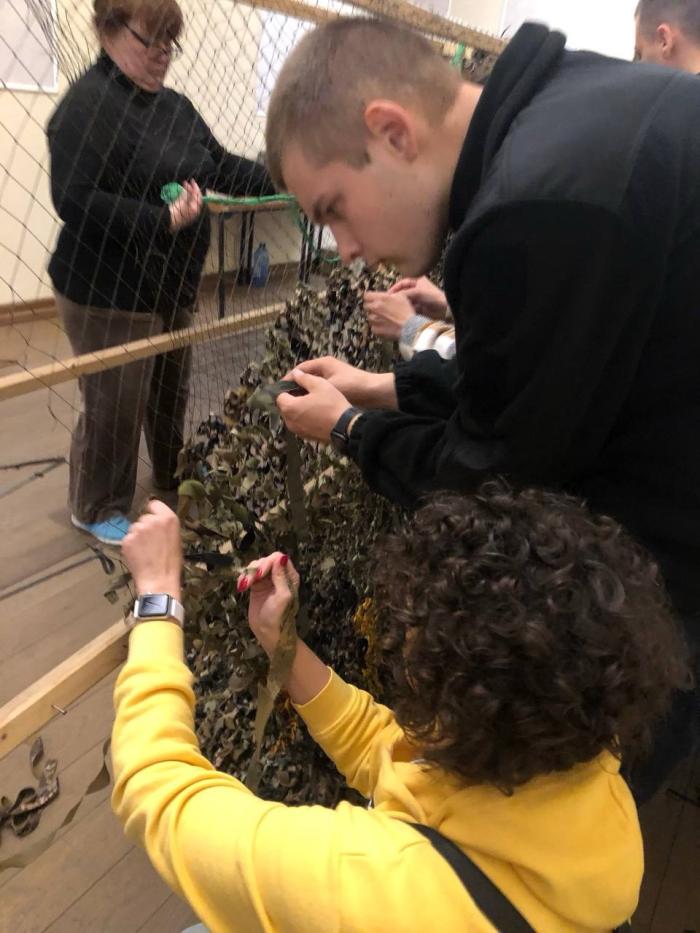 Курсанти 1 курсу факультету № 4 Харківського національного університету внутрішніх справ разом із викладачкою кафедри іноземних мов факультету № 4 кураторкою групи Наталією Олендрою продовжують волонтерську справу з плетіння маскувальних сіток. Юнаки і дівчата у вільний від навчання час активно допомагають Збройним Силам України, які мужньо боронять нашу країну від російських окупантів. Разом до перемоги!
