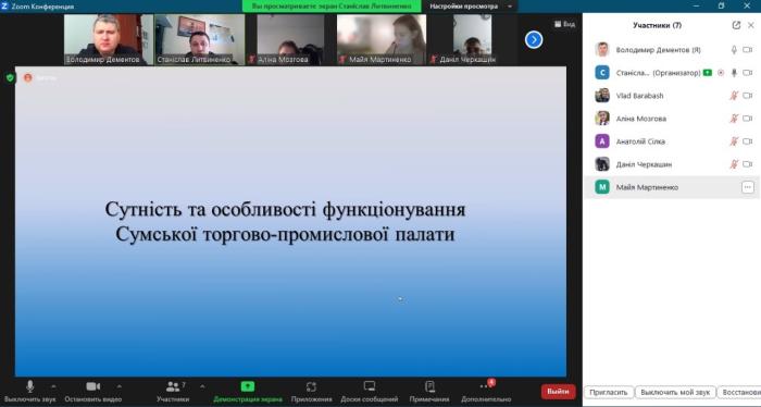 У межах вивчення навчальної дисципліни «Національна економіка» доцент кафедри соціально-економічних дисциплін Сумської філії ХНУВС Володимир Дементов провів бінарне заняття з елементами дискусії для студентів 2 курсу спеціальності «Право» за участі начальника управління взаємодії з бізнесом, головного юрисконсульта Сумської торгово-промислової палати Станіслава Литвиненка.