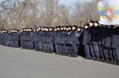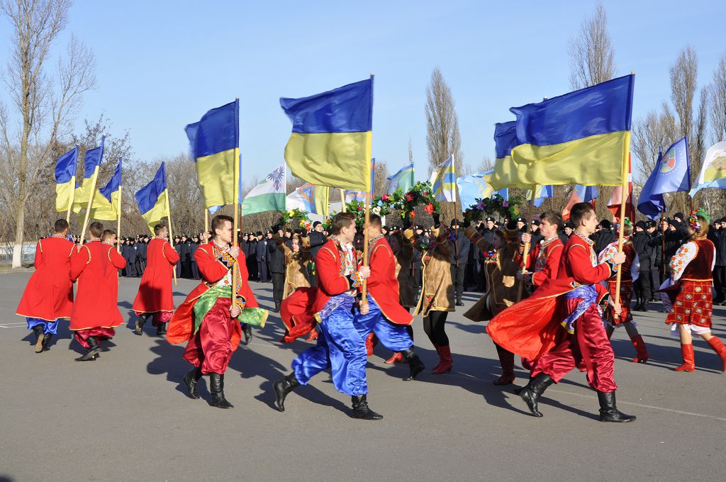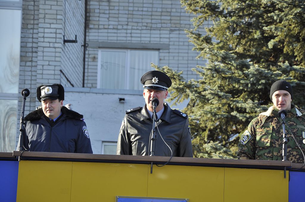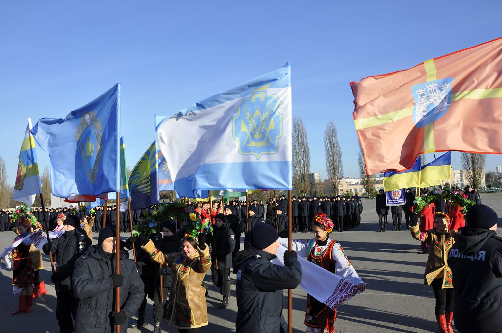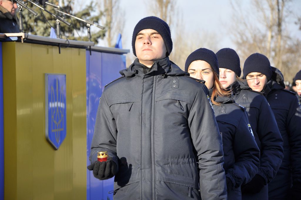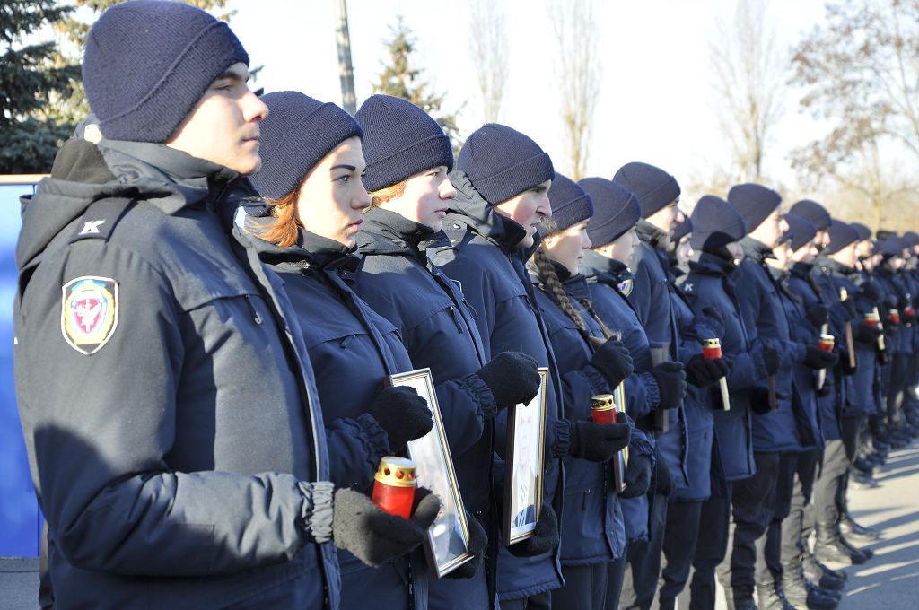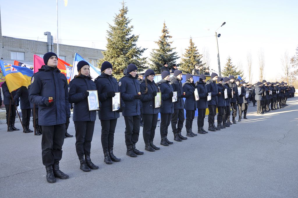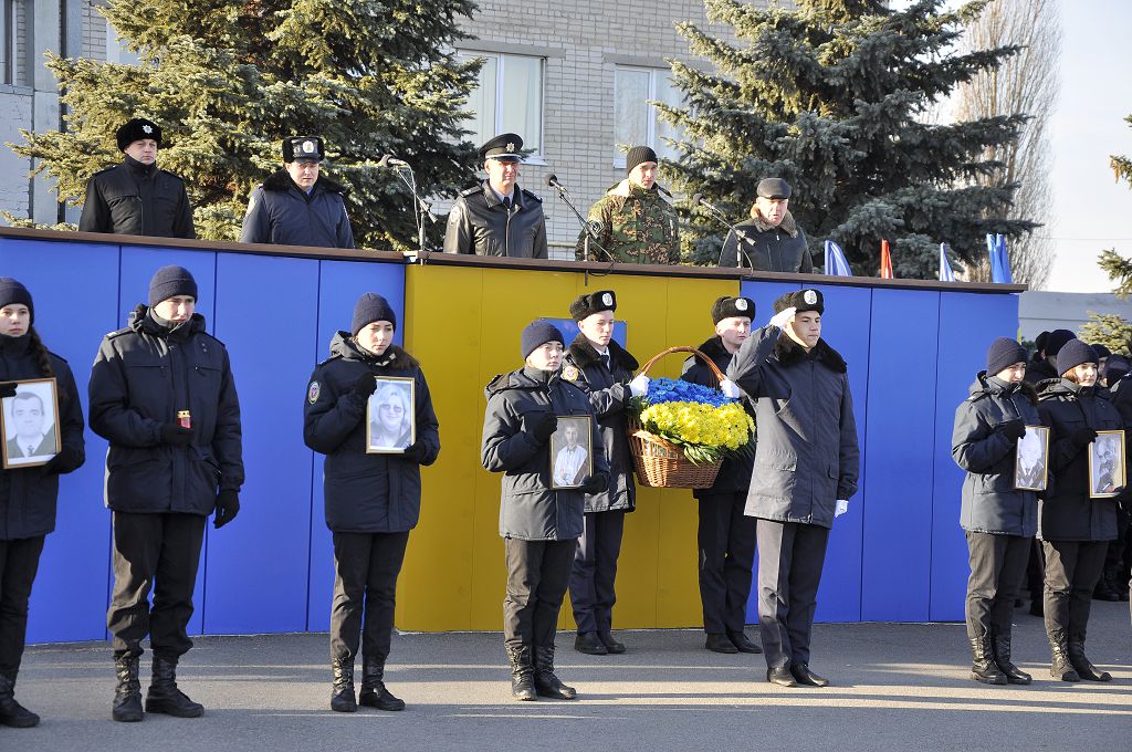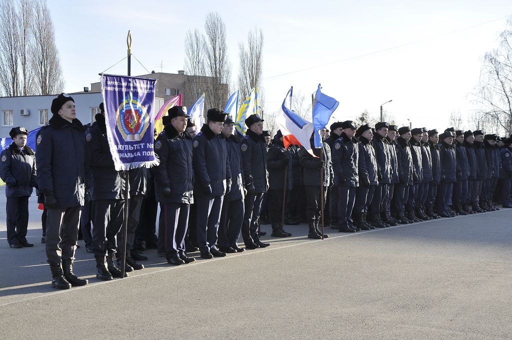 Звертаючись до присутніх, ректор університету генерал поліції третього рангу Валерій Сокуренко зазначив, що Революція Гідності стала визначною віхою в історії українського народу, коли тисячі молодих людей вийшли на майдан Незалежності, виступаючи проти тоталітаризму, захищаючи свій демократичний вибір, честь і гідність. «Багато хто хоче дестабілізувати ситуацію в нашій державі, і правоохоронці сьогодні знаходяться на передньому рубежі, несуть службу в АТО, захищаючи Схід України. Святим обов’язком працівника поліції завжди були й залишаються Порядок і Закон, захист прав і свобод наших громадян». Ректор побажав працівникам натхнення в несенні служби, сумлінного виконання своїх обов’язків, а курсантам добре вчитися, щоб стати в майбутньому справжніми фахівцями.
