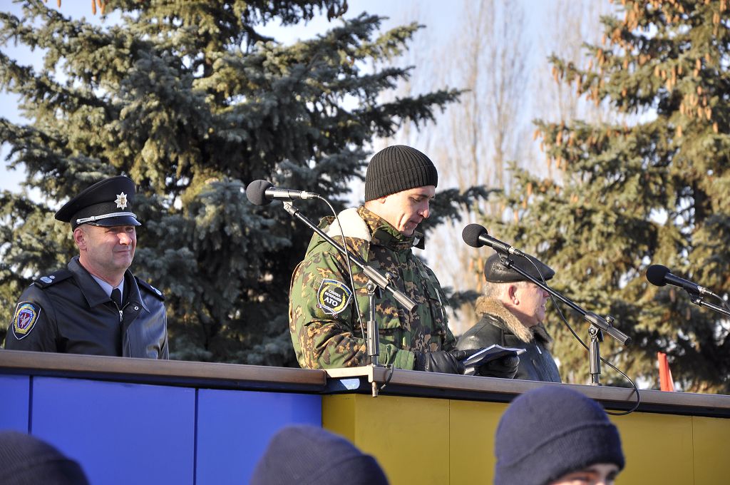 Присутній на урочистостях голова Харківської обласної громадської організації «Спілка ветеранів АТО», легендарний кіборг, кулеметник 93-ї механізованої бригади, неодноразово відзначений за мужність та героїзм державними та військовими нагородами, Олександр Сергєєв у своєму виступі зазначив, що «всім громадянам України сьогодні потрібно захищати державу від ворога та втілювати в життя реформи. Саме це дасть можливість змінити наше життя на краще».
