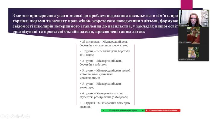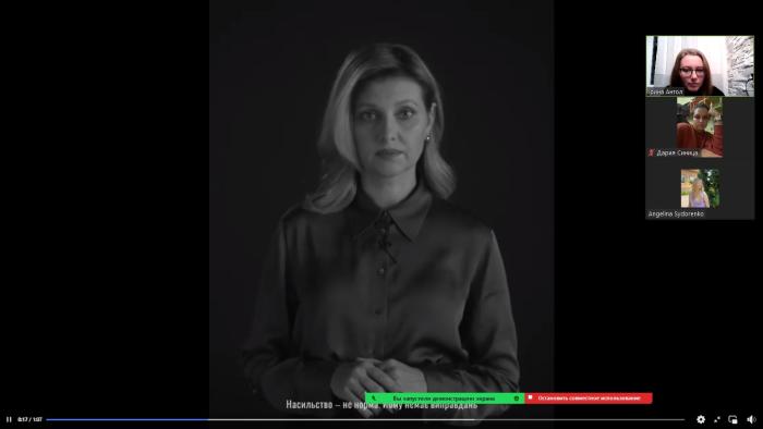 Доцентка кафедри правового забезпечення підприємницької діяльності та фінансової безпеки факультету № 6 ХНУВС Ірина Антол розповіла студентам 2 курсу про проблеми подолання різних форм домашнього насильства, жорстокого поводження з дітьми, протидії торгівлі людьми та захисту прав жінок. Студенти переглянули з офіційної сторінки Олени Зеленської в мережі Facebook відео «Зроби крок. Чуйність перемагає насильство» для тих, хто потерпає від домашнього насильства, і для тих, хто стає його свідком.