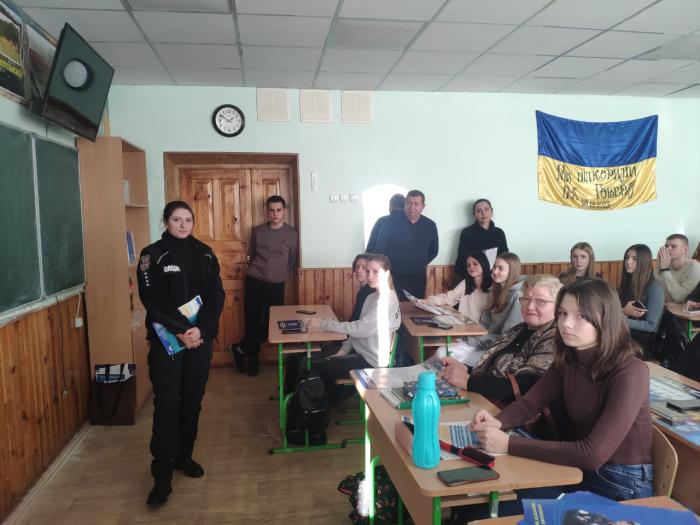 У профорієнтаційних зустрічах також активну участь взяли працівники Хмільницького РВП ГУНП у Вінницькій області – начальниця сектору кадрового забезпечення Наталія Макух і старша інспекторка сектору кадрового забезпечення Яна Бартащук.