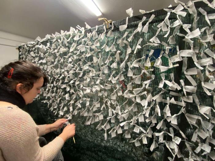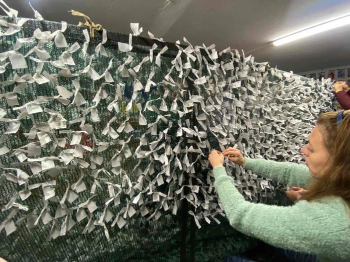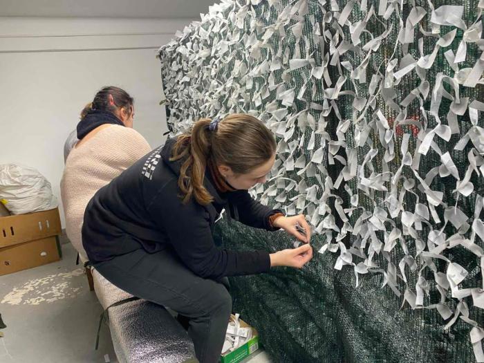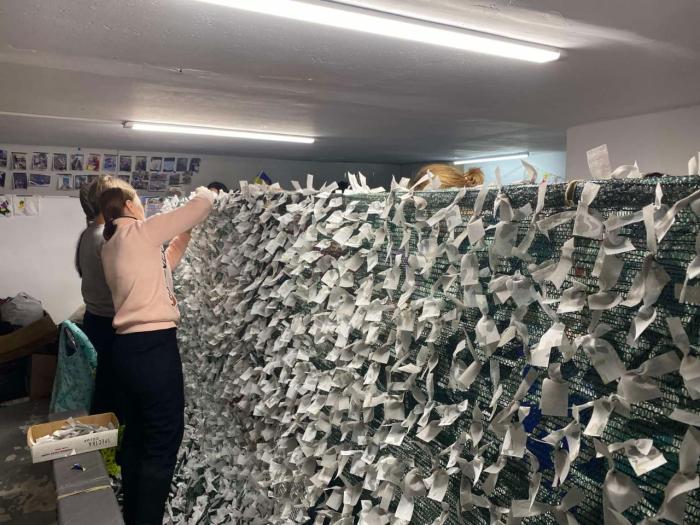 Щодня у вільний від навчання час студенти працювали над виготовленням камуфляжних сіток для наших військових. Вже сплетено та передано на фронт десятки кілометрів маскувальних сіток. Ця робота не припиняється від початку війни.