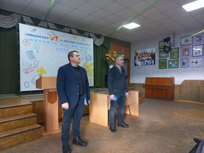 Представники ХНУВС – заступники деканів з навчально-методичної роботи факультету № 2 Сергій Гіренко та факультету № 3 Григорій Джагупов разом із курсантами факультетів, які навчаються за спеціальностями «Право» та «Правоохоронна діяльність», провели профорієнтаційну зустріч з учнями чотирьох випускних класів і педагогічними працівниками Вінницького ліцею № 7 ім. Олександра Сухомовського. У заході також взяв участь випускник цього ліцею Максим Калайда, який зараз навчається на факультеті № 2 за спеціальністю «Право».