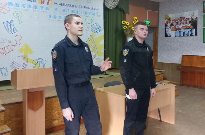 У межах проведення Всесвітньої акції «16 днів проти насильства» курсанти розповіли ліцеїстам про види насильства, особливу увагу звернули на те, до кого потрібно звертатися підлітку, якщо він став жертвою насильства або булінгу. Вони закликали старшокласників завжди пам’ятати – насильство не можна терпіти, з ним потрібно боротися.