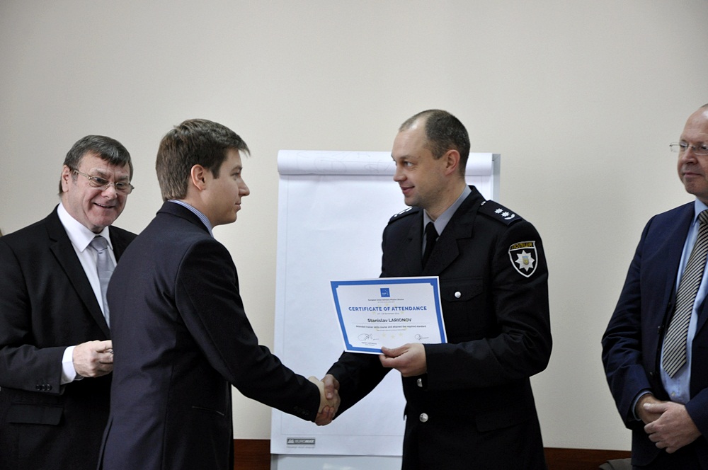 На базі Харківського національного університету внутрішніх справ у рамках реформування поліції завершився третій тренінг-курс «Тренуй тренера». Відмінна особливість цих тренінгів полягає у тому, що їх учасники – працівники поліції – не тільки отримують нові спеціальні знання, але й можуть згодом поділитися ними зі своїми колегами.