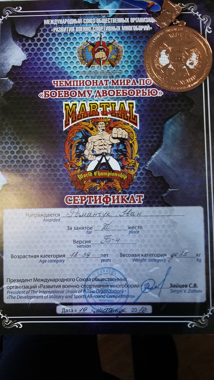 За результатами змагань курсант 4-го курсу факультету № 1 Іван Романчук посів ІІІ місце і став бронзовим призером змагань.