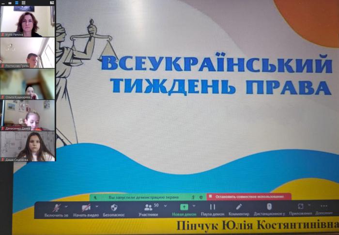 У межах проведення тижня права старша викладачка кафедри правоохоронної діяльності та поліціїстики факультету № 6 Юлія Пінчук провела онлайн-лекцію на тему «Права дитини та їх захист під час воєнного стану» для учнів комунальних закладів – Харківських ліцеїв № 103 та № 167 Харківської міської ради.
