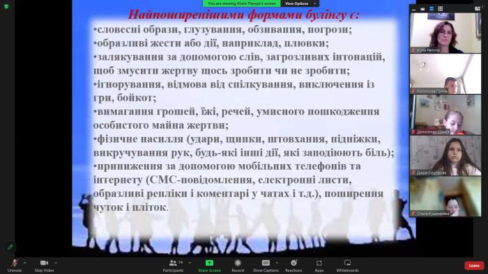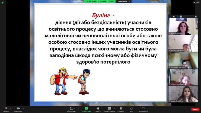 Особливу увагу було приділено закріпленню прав дитини на міжнародному рівні, положенню Загальної декларації прав людини, Конвенції про захист прав людини та основоположних свобод. Учасники заходу обговорили питання дотримання і захисту прав дитини під час воєнного стану, толерантного поводження та заборони дискримінації, булінгу.
