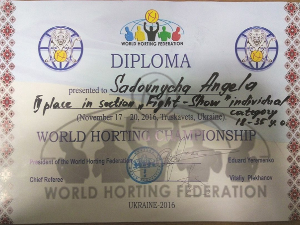Серед учасників змагань була і студентка 2-го курсу факультету № 6 Харківського національного університету внутрішніх справ Анжела Садовнича. Вона стала бронзовою призеркою чемпіонату в розділі «Показовий виступ – індивідуальний» у віковій категорії 18–35 років.