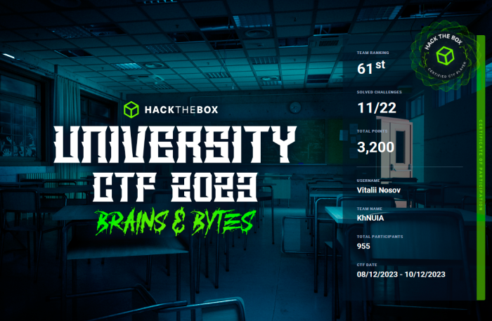 на інтернет-платформі «Hack The Box». До складу команди увійшли: Станіслав