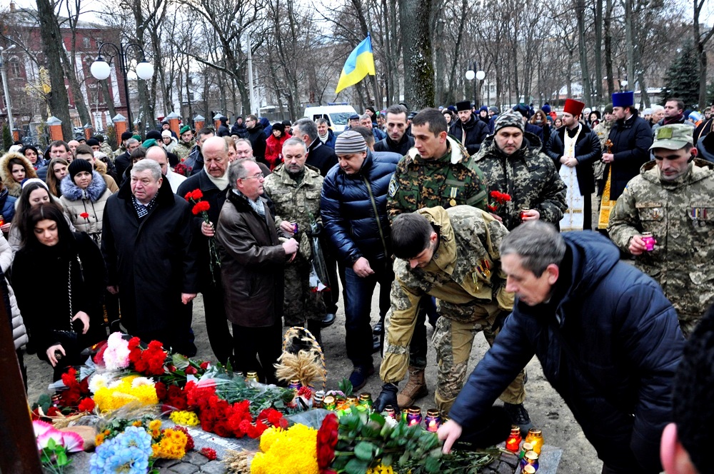 Квіти до Пам’ятного Хреста Жертвам Голодомору 1932-1933 рр. у Молодіжному парку поклали керівники Харківської обласної державної адміністрації, Харківської обласної та міської рад, представники політичних та громадських організацій, правоохоронних органів, духовенство, учасники АТО, ветерани, мешканці міста Харкова.
