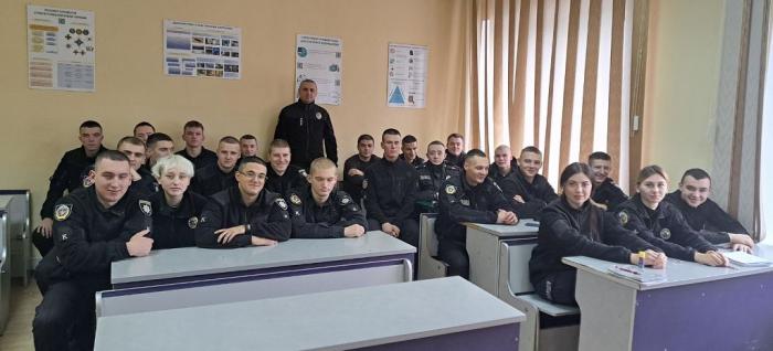 Працівник поліції поділився з курсантами власним досвідом роботи в практичних підрозділах Національної поліції, а також звернув увагу на особливості складання протоколів та винесення постанов по адміністративних справах за різними складами адміністративних правопорушень, провадження за якими уповноважені здійснювати працівники поліції.