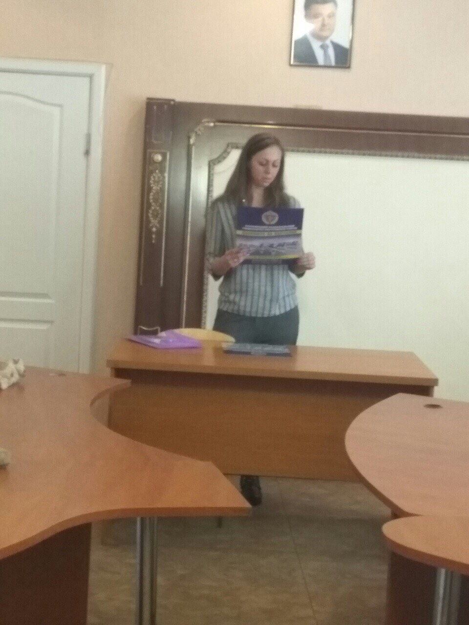 Вона поспілкувалася з учнями, ознайомила їх з історією університету, умовами вступу на 2017 рік, розповіла про курсантське і студентське життя у вищому навчальному закладі, а також відповіла на запитання юнаків і дівчат, які цікавились професією поліцейського та особливостями проходження служби в органах Національної поліції України.