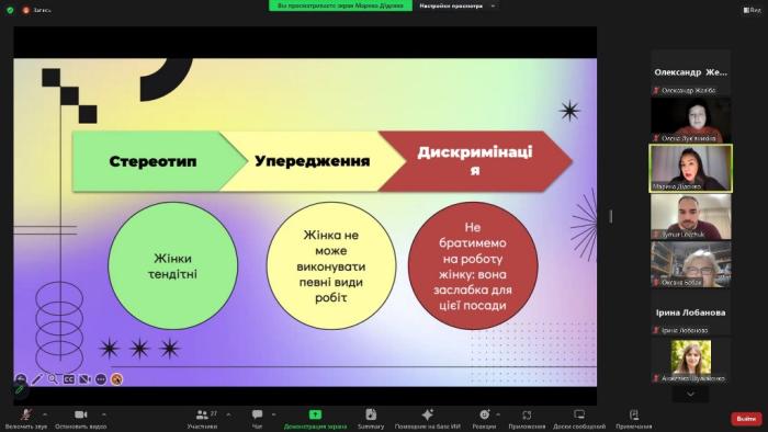 Тренерами заходу виступили психологиня-практик, тренерка, кандидатка психологічних наук, викладачка університету Марина Діденко та радник з гендерної рівності та соціальної інклюзії USAID-TCA Тимур Левчук. Вони розглянули непросту, але актуальну тему й доступно і професійно розповіли її основні положення. За допомогою інтерактивних вправ спікери підвищили обізнаність аудиторії про стереотипи, упередження і дискримінацію, розглянули вразливі групи, представлені в суспільстві тощо.
