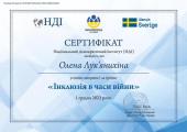 За результатами тренінгу Олена Лук’янихіна отримала сертифікат. Обговорені під час заходу аспекти сприятимуть напрацюванню коректного термінологічного базису для забезпечення рівних комунікацій з інклюзивними групами населення під час війни.