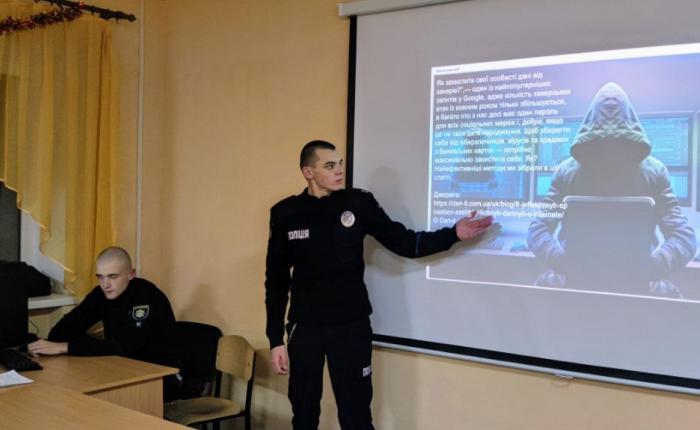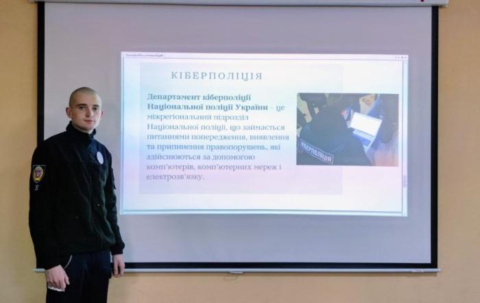 З доповідями виступили: курсант 1 курсу Дмитро Пустовойт на тему «Протидія кіберзлочинності в Україні в сучасних умовах війни», курсант 1 курсу Андрій Шаповалов – «Сучасні інструменти протидії кіберзлочинам», студентка 1 курсу Дана Ткаченко – «Теоретико-правові основи забезпечення кібербезпеки України», студентка 1 курсу Єлизавета Курило – «Електронний суд України».