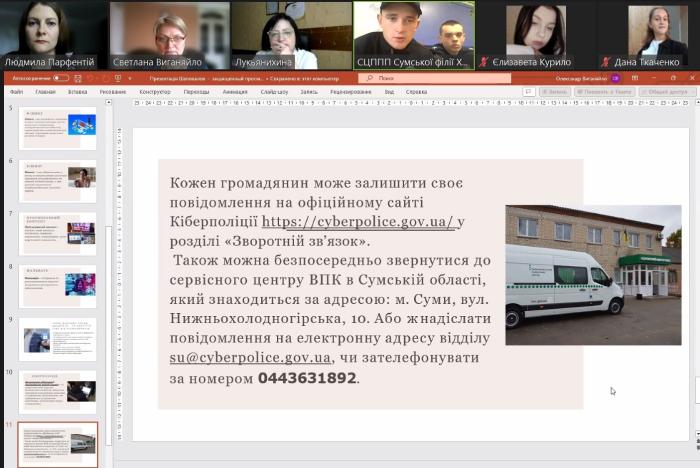 На кафедрі соціально-економічних дисциплін Сумської філії ХНУВС відбувся круглий стіл студентсько-курсантського гуртка «Актуальні проблеми розвитку національної економіки в умовах глобалізації» за темою «Протидія кіберзлочинності в Україні: сучасний стан, особливості в умовах війни», організатором якого виступила наукова керівниця здобувачів – доцентка кафедри, кандидатка економічних наук, доцента Світлана Виганяйло.