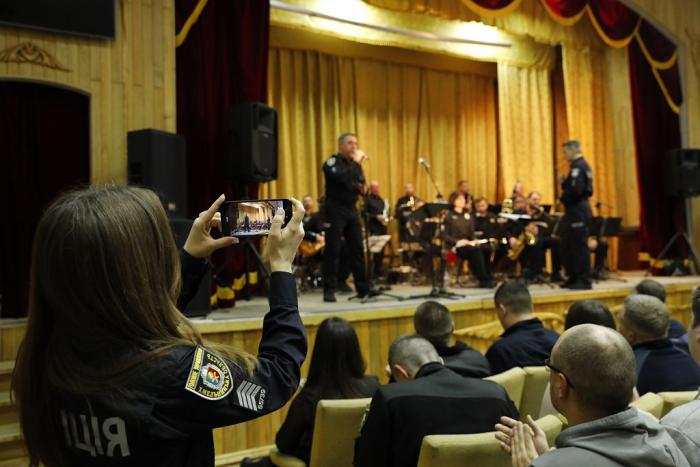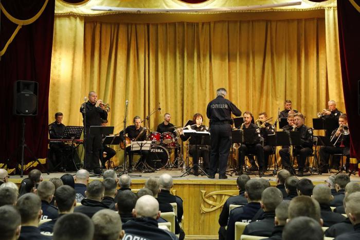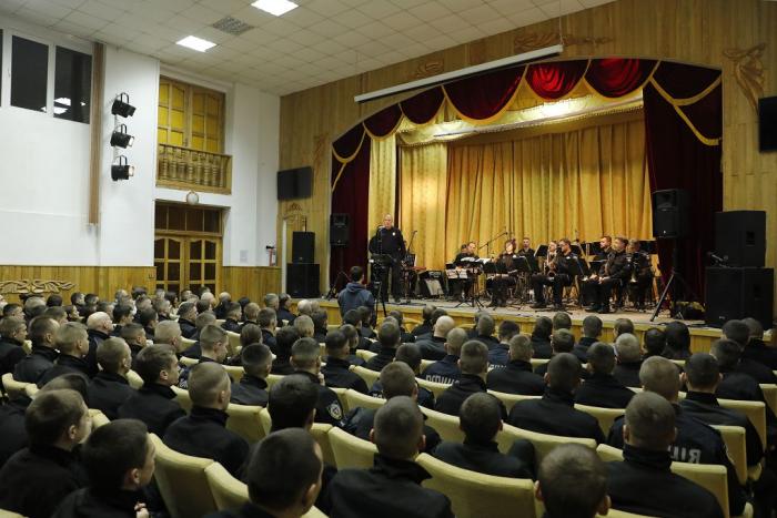 З нагоди різдвяних та новорічних свят оркестр ГУНП в Хмельницькій області привітав колектив Харківського національного університету внутрішніх справ святково-патріотичною програмою.