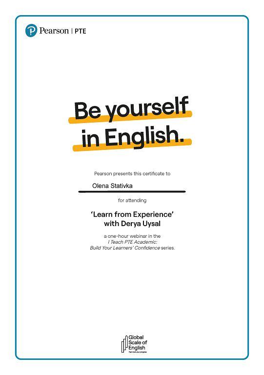 Науково-педагогічний склад кафедри іноземних мов факультету №4 ХНУВС – завідувачка кафедри Олена Статівка, доценти цієї ж кафедри Олег Гончарук, Валентина Кочина, Валентина Почуєва, старші викладачі Артем Білоусов та Лариса Сазанова – відвідали онлайн-вебінар «Learn from Experience» серії «I Teach PTE Academic: Build Your Learners’ Confidence series» від Pearson / PTE. Розглядалися питання мiжнародного іспиту PTE (Pearson Language Tests), метою якого є оцінка поточного рiвня володiння англійською мовою, а також подолання типових труднощів, з якими стикаються ті, хто складають такий іспит. Навички мовлення, аудіювання, читання та письма оцінює машина для фіксації точного й об’єктивного результату знань. Викладачі ознайомилися також з порадами та методами, які зміцнюють впевненість і налаштування на успіх.