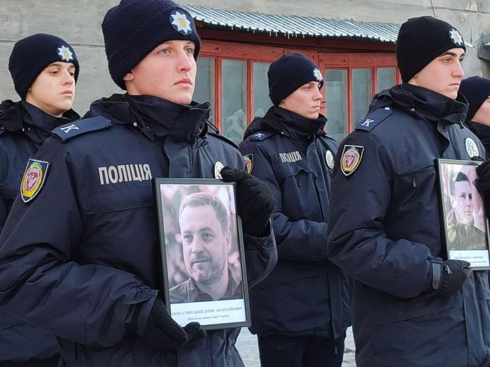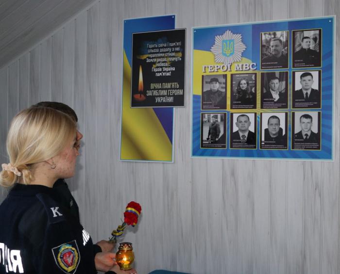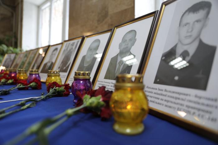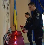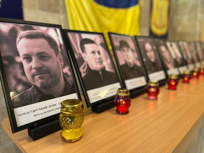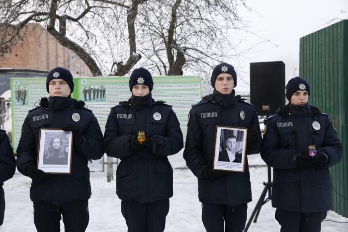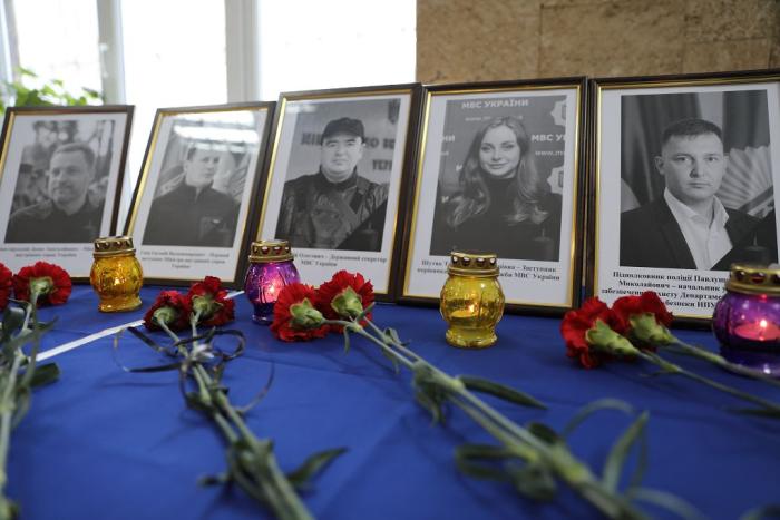 Цього ж дня в університеті біля портретів загиблих працівників МВС та пілотів запалили свічки пам’яті та поклали квіти до пам`ятників Героям – визволителям України. Міністр внутрішніх справ Денис Монастирський, перший заступник Міністра Євгеній Єнін, Державний секретар МВС Юрій Лубкович, заступниця керівника Патронатної служби МВС Тетяна Шутяк, начальник управління забезпечення захисту Департаменту внутрішньої безпеки НПУ підполковник поліції Михайло Павлушко, старший оперуповноважений в ОВС 4-го відділу УЗЗ ДВБ НП України Андрій Марінченко, провідний інспектор Департаменту комунікації МВС Микола Анацький, командир повітряного судна – інструктор авіаційної ескадрильї спеціального призначення на вертольотах Олександр Василенко, пілот авіаційної ескадрильї спеціального призначення на вертольотах Костянтин Коваленко, бортовий механік авіаційної ескадрильї спеціального призначення на вертольотах прапорщик служби цивільного захисту Іван Касьянов.