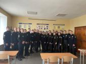Бесіду на тему «Дисципліна та порядок при несенні служби» провів куратор групи професор кафедри кримінального процесу та організації досудового слідства факультету № 1 Геннадій Глобенко. Він наголосив на сумлінному навчанні, дотриманні дисципліни та вимог Закону України «Про Національну поліцію», Дисциплінарного статуту Національної поліції України, Правил етичної поведінки поліцейських й безумовного дотримання Правил дорожнього руху та транспортної дисципліни. Геннадій Глобенко також підбив підсумки результатів навчання у групі за минулий семестр і звернув увагу курсантів на значущість наукового підходу у підготовці до навчальних занять.