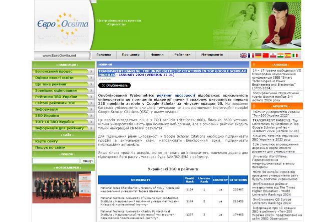 Вийшов черговий випуск рейтингу прозорості Top Universities by Google Scholar Citations (Webometrics), що відображає відповідність університетів принципам доброчесності й відкритості науки і визначає найкращі із закладів за цитуваннями у профілях його науковців в Google Scholar.