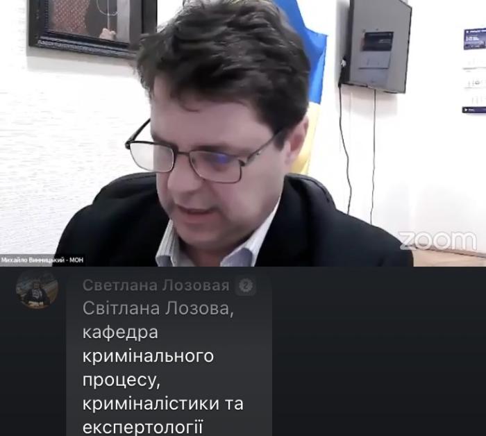 Доцентка кафедри кримінального процесу, криміналістики та експертології факультету № 6 ХНУВС кандидатка психологічних наук, доцентка Світлана Лозова взяла участь в онлайн-зустрічі «Відверта розмова» з заступником Міністра освіти і науки України з питань вищої освіти Михайлом Винницьким, яка була організована ГО «Прогресильні».