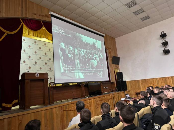 Для здобувачів вищої освіти факультетів №№ 1-4 та № 6 за локаціями Харківського національного університету внутрішніх справ у м. Вінниця та м. Кам’янець-Подільський відділом соціально-гуманітарної роботи проведено виховні заходи за участі директора Вінницького музею Голокоста Леоніда Трахтенберга та проректора з науково-педагогічної роботи та міжнародних зв’язків кандидата політичних наук, доцента Кам’янець-Подільського національного університету ім. І. Огієнка Василя Кобильника.