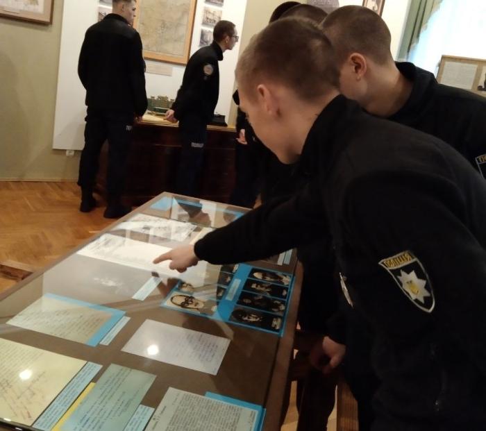 Наукова співробітниця музею Олена Любива ознайомила курсантів із матеріалами виставки «За Соборну Україну», в якій представлені документи і фото з фондів музею та центральних архівних установ України. Вона також розповіла про історичні обставини та передумови бою під Крутами, продемонструвавши документи, в яких висвітлені спогади учасників тих подій.