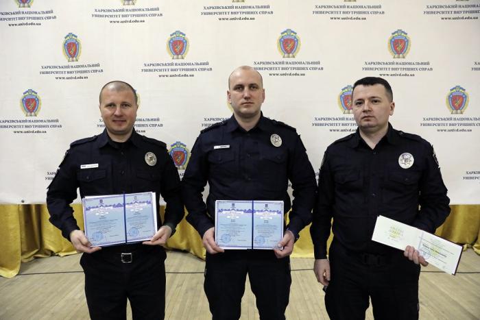 На початку заходу було відзначено представників університету за досягнення у професійній та науковій діяльності. Ступінь доктора філософії у галузі знань 08 «Право» за спеціальністю 081 «Право» присуджено Богдану Іванюку та Денису Лагодієнку. Рішенням Атестаційної колегії Міністерства освіти і науки України вчене звання доцента кафедри кримінального права і кримінології присвоєно доценту кафедри підполковнику поліції Івану Кріцаку. Вчена рада проголосувала за присвоєння вченого звання «професор» доценту цієї ж кафедри, доктору юридичних наук Олександру Зозулі. За участь у Всеукраїнському конкурсі творчих робіт «Національно-патріотичне становлення молоді» з нагоди відзначення Дня Соборності України Дипломом ІІ ступеня нагороджено курсантку факультету № 2 Мілєну Цвєткову. Ректор університету, генерал поліції третього рангу Валерій Сокуренко привітав представників університету й побажав подальших успіхів у службі та професійному зростанні.