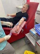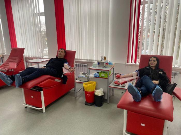 Курсанти Харківського національного університету внутрішніх справ вкотре надали допомогу лікувальним закладам, ставши донорами крові. 40 курсантів факультетів № 2 і № 3 прийшли до обласного центру служби крові разом із керівниками, курсовими офіцерами, працівниками факультетів. Кров – важливий компонент для лікування різних хвороб і поранень, від яких в умовах війни страждають не лише військові, а й пересічні громадяни. Як стверджують фахівці, одна донація крові може врятувати життя трьом особам. Загалом було здано майже 20 літрів крові. Допомагаємо нашим громадянам, Збройним Силам України – наближаємо Перемогу!