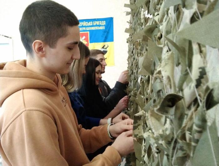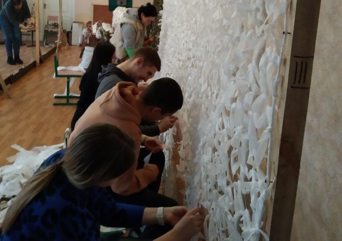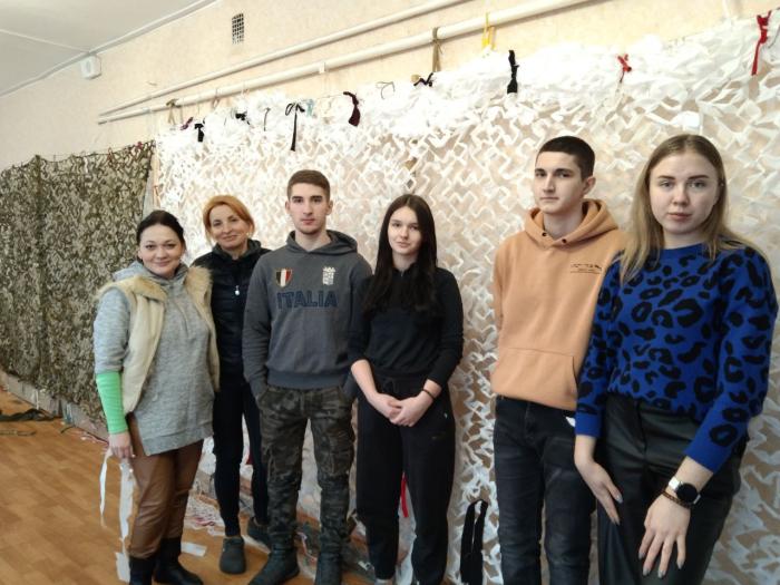 Здобувачі вищої освіти, які навчаються на першому курсі за спеціальністю «Право», – Катерина Красій, Віталій Кийков, Глеб Курдес та Анастасія Колодченко разом із провідною фахівчинею відділення кадрового забезпечення Ганною Мітітєл у черговий раз долучилися до плетіння маскувальних сіток у волонтерському центрі «Моторний вулик». Разом із волонтерами центру вони виготовили дві маскувальні сітки – білого та захисного кольорів. Така спільна робота допомагає виконати багато замовлень, які надходять від військових. Потреба в сітках завжди є, вони необхідні бійцям на фронт, щоб бути непоміченими з неба та убезпечити своє життя і техніку.