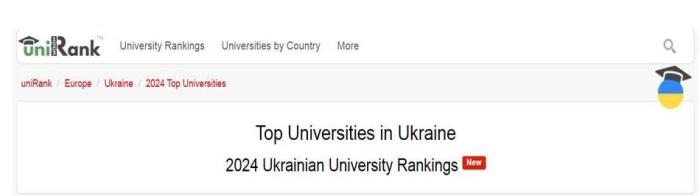 Опубліковано нову редакцію рейтингу університетів UniRank 2024. UniRank University Ranking (https://www.4icu.org) – міжнародний неакадемічний рейтинг, що досліджує якість представлення та популярність університетів у Інтернет-просторі на основі незалежних вебометричних показників, зібраних з авторитетних джерел (Moz, Majestic, SimilarWeb). Автори рейтингу зазначають, що такий підхід покликаний допомогти студентам, викладачам та науковцям оцінити загальну популярність університету.