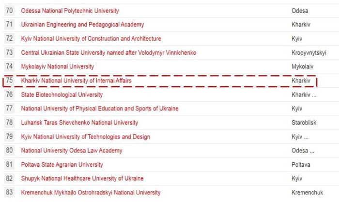 У 2024 році UniRank вимірює популярність і відвідуваність сайтів/ соціальних мереж 14000 університетів світу, у тому числі 192 українських. Серед них і 7 ЗВО МВС України. Харківський національний університет внутрішніх справ посів 75 місце (з 192) у національному рейтингу і 5827 (з 14000) у світовому. Це найкращий результат серед ЗВО МВС.