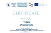 Доцентка кафедри гуманітарних дисциплін Сумської філії ХНУВС Тетяна Пономаренко взяла участь у VI Зимовій школі з Європейських студій «Соціальна політика ЄС і політика згуртування: Розробка політик та імплементація», що об’єднала здобувачів вищої освіти, молодих учених, аспірантів, докторантів, дослідників, науково-педагогічних працівників, представників професійних спільнот і громадянського суспільства країн Європейського Союзу та України.
