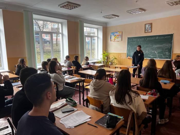 Курсантка 2 курсу факультету № 1 Харківського національного університету внутрішніх справ Ольга Мельничук під час короткострокової канікулярної відпустки відвідала низку закладів загальної середньої освіти м. Тернопіль – ЗОШ № 11, № 20 ім. Р. Муляра, Тернопільську спеціалізовану школу № 7 та навчально-виховний комплекс «Школа-колегіум Патріарха Йосифа Сліпого», де провела зустрічі з випускниками.