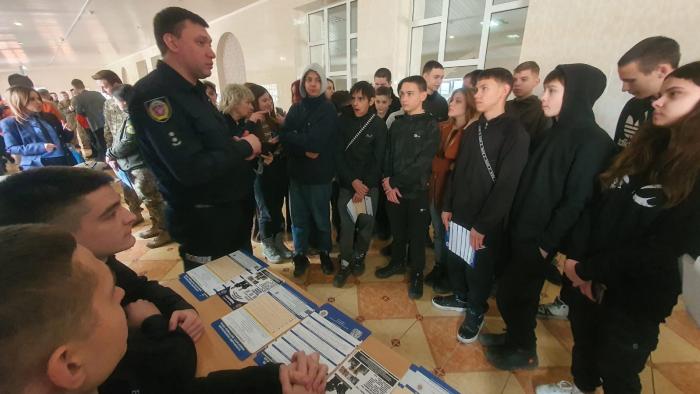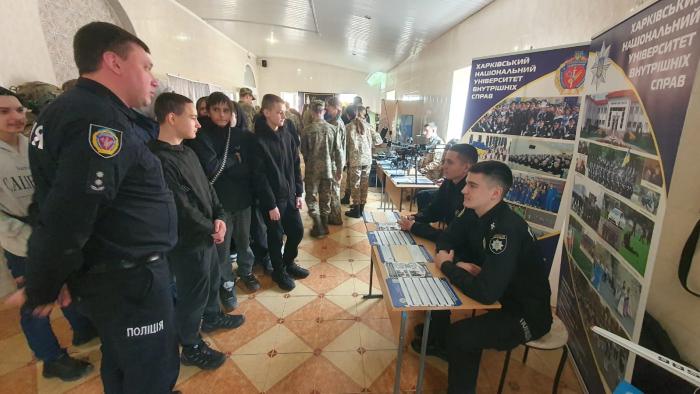 Під час профорієнтаційних заходів представники ХНУВС розповіли ліцеїстам про університет, презентували факультети та спеціальності, за якими реалізується підготовка здобувачів вищої освіти, охарактеризували умови вступу, переваги та особливості навчання у поліцейському виші.