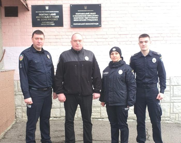 Науково-педагогічні працівники факультету № 2 Харківського національного університету внутрішніх справ Іван Грабазій та Олексій Маник разом із помічником ректора Анатолієм Клочком і представниками Кременчуцького льотного коледжу, курсантами 2 курсу факультету № 2 Олександром Якушевським та Андрієм Лемешевським взяли участь у Дні відкритих дверей у Полтавському ліцеї із посиленою військово-фізичною підготовкою імені Віталія Грицаєнка.