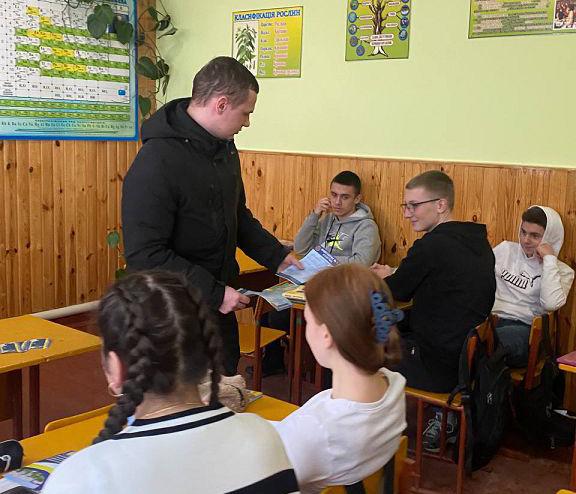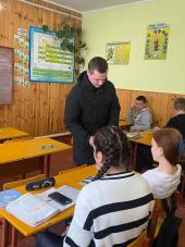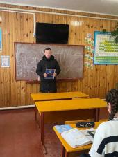 Студент 1 курсу факультету № 6 ХНУВС Назарій Опалько за сприянням кафедри криміналістики, судової експертології та домедичної підготовки Харківського національного університету внутрішніх справ провів профорієнтаційну зустріч у Кам'яне-Случанську гімназію Вирівської сільської ради Сарненського району Рівненської області.