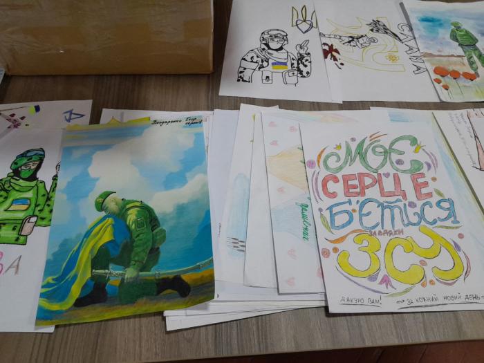 Гуманітарну допомогу та дитячі листівки було передано бійцям у лікарні.