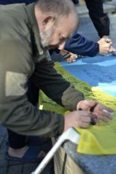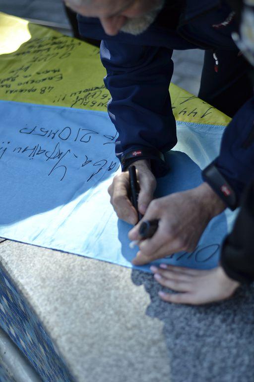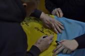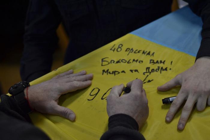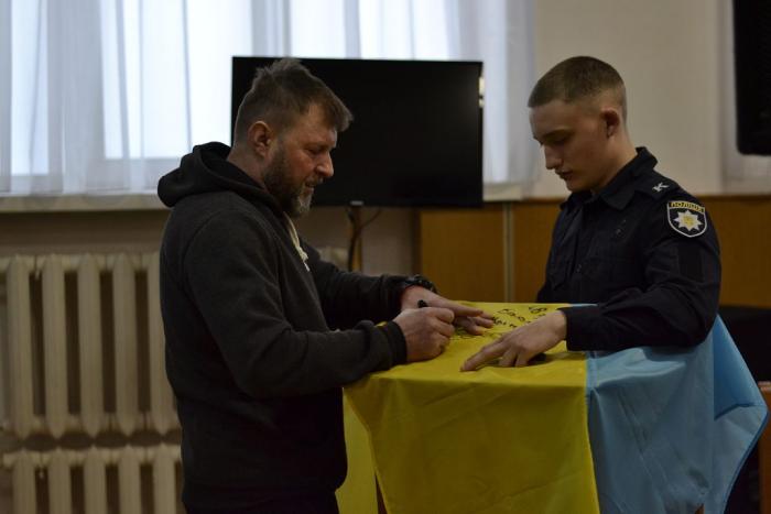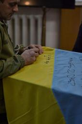Військові теж підготували подарунок – Прапор України, на якому залишили свої підписи з побажаннями та настановами для курсантів і студентів.