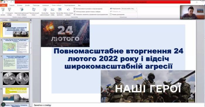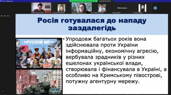 У форматі презентації Марія Тахтаулова виклала хронологію історії десятирічної війни, сповненої болючих випробувань, героїчних вчинків і незламної боротьби українського народу за свій суверенітет.