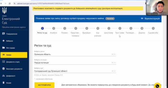 Особливу увагу суддя звернула на функціонування електронної Єдиної судова інформаційно-телекомунікаційна система (ЄСІТС) в Україні, що на законодавчому рівні закріплюється Законом України «Про внесення змін до Господарського процесуального кодексу України, Цивільного процесуального кодексу України, Кодексу адміністративного судочинства України та іншого законодавства». Наочно показала, як подавати заяву в електронному вигляді без присутності у суді.