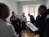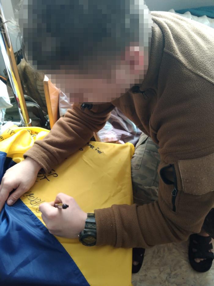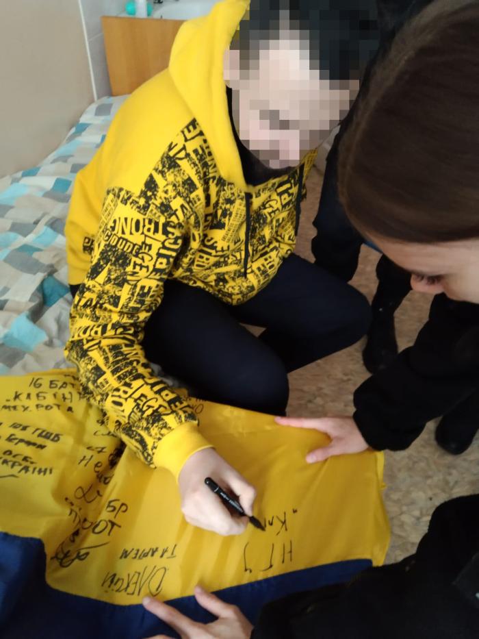 Зустріч пройшла у дружній та теплій атмосфері – військові спілкувалися з курсантською молоддю, дякували за підтримку, залишивши на згадку про зустріч свої імена на прапорі України.